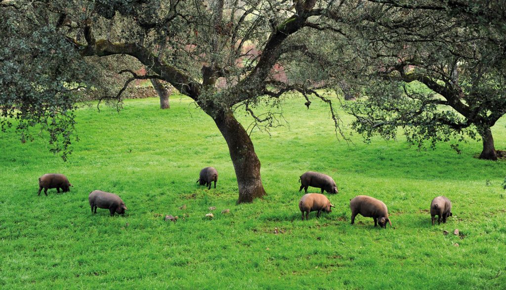 Zunächst war der luftgetrocknete Schinken, der Jamón Ibérico, Ausdruck von mediterranem Genuss. Mittlerweile ist auch das Fleisch in die kulinarische Welt eingezogen. Kein Wunder, denn die besondere Ernährung und Haltung der Tiere bestimmt die Qualität des Fleisches mit seinem nussigen Geschmack. Das Duroc-Schwein stammt ursprünglich aus den USA.